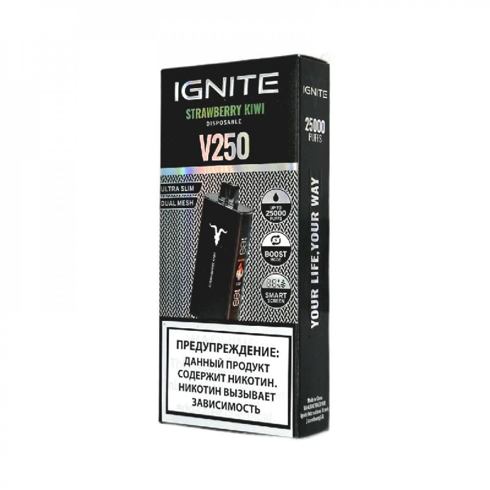 Электронная сигарета Ignite V250 Black 25000 - Strawberry Kiwi (Клубника киви) - купить в Брянске