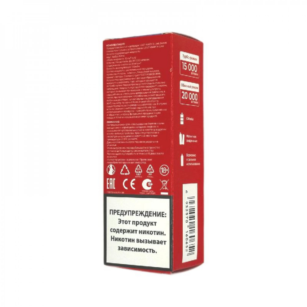 Технические характеристики Картридж Lost Mary X-Link Sweet 20000 - Кислое яблоко Лед